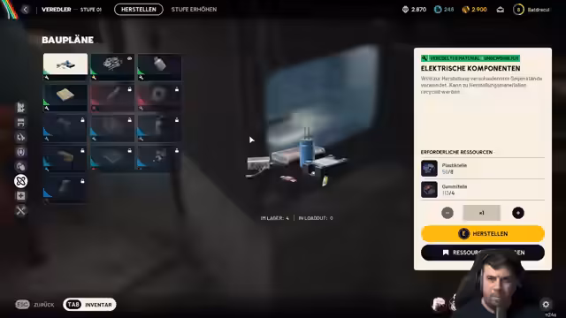 05:28:05Nach dem Neustart des Spiels wird das System zur Verbesserung von Waffen und Rüstung erläutert. Durch Rechtsklick auf ein Item können Verbesserungen vorgenommen werden, die Waffen schneller nachladen, genauer machen und mehr Schaden verursachen. Verbesserungen erfordern Ressourcen wie mechanische Komponenten und Metallteile. Der Streamer verbessert seine Rattler-Waffe und sein Schild, recyclet nicht benötigte Items für nützlichere Materialien und erweitert sein Inventar. Er geht auch auf das Inventar-Management ein, das für den erfolgreichen Abschluss von Missionen entscheidend ist.