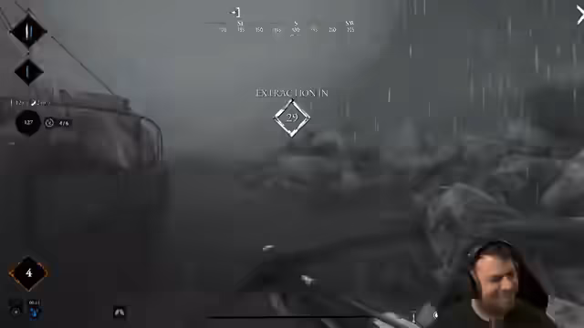 01:12:25Dieses Segment zeigt einen intensiven Kampf im Spiel. Der Streamer und sein Team kämpfen gegen einen gegnerischen Jäger, der eine Bogen und eine Katana besitzt. Die Situation ist hektisch, und sie müssen entscheiden, ob sie sich zurückziehen oder den Kampf auf sich nehmen. Die Runde endet für das Team tödlich, was den Streamer frustriert.