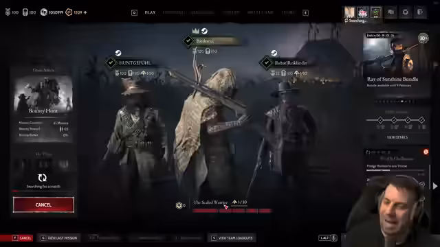 04:44:07Der Streamer nimmt direkten Kontakt zur Community auf. Er wird von einem Zuschauer mit dem Spielernamen Armeno begrüßt und ein weiterer, Runenwölfer, gibt Feedback, dass bei Hunt: Showdown Solo-Spieler in 15er-Lobbys oft benachteiligt sind. Der Streamer stimmt dem teilweise zu, merkt aber an, dass man durch weniger PvP-Aktivität auch weniger in diese Lobbys gerät. Als Bewerbung für die Community wird erneut der wöchentliche Comday angekündigt und die Streaming-Pause der nächsten Woche wiederholt.