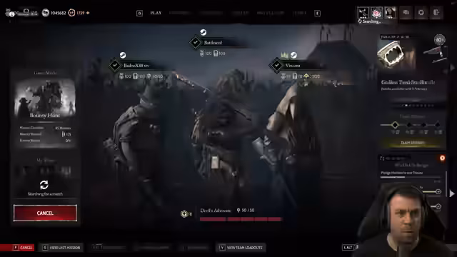 01:38:25Der Streamer wechselt den Spielmodus zu 'Bounty Clash' und kündigt an, in Kürze ein Giveaway zu starten. Da er wegen bevorstehender Prüfungen die kommende Woche streamen muss, verspricht er, in der Folgewoche intensiv zu streamen. Die Anmeldephase für das Giveaway beginnt, und Zuschauer werden aufgefordert, teilzunehmen.
