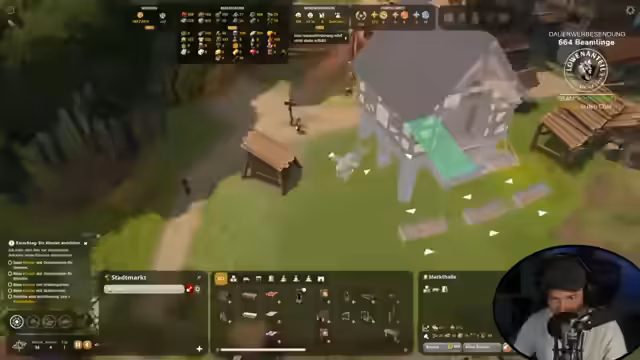 00:21:38Nachdem die Grundversorgung gesichert ist, richtet sich der Fokus auf die Lebensqualität der Einwohner. Die Wohngebiete sollen aufgerüstet und mit mehr Verschönerungen wie Bänken und Laternen ausgestattet werden. Die bestehenden Holzfäller- und Schafswirtschaft werden erweitert, um einen stabilen Überschuss an Brettern, Wolle und Kleidung zu schaffen. Es wird die Größe der Schafskoppel angepasst und ein zweites Webergebäude geplant.