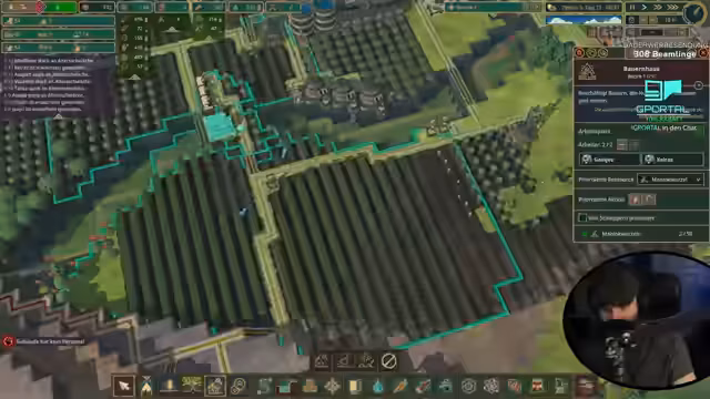 00:41:56Trotz mehrerer Felder für Maniokwurzeln bleibt die Nahrungssituation kritisch. Der Bau weiterer Häuser wird priorisiert, ebenso das Pflanzen zusätzlicher Eichen zur Sicherung der Holzversorgung. Der erste Förster wird gebaut, um das Holzmanagement zu optimieren. Die Arbeiter werden gezielt auf Bauprojekte konzentriert, um die Infrastruktur, wie beispielsweise Treppen zu höheren Ebenen, auszubauen und so die Grundlage für zukünftiges Wachstum zu schaffen.
