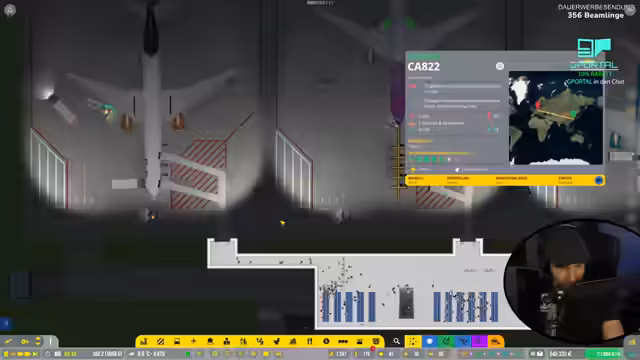 00:46:40Der massive Umbau beginnt mit dem Abriss von Gebäuden und dem Neubau von Straßennetzen, inklusive eines Tunnels, um eine durchgehende Verbindung herzustellen. Die Baustelle verursacht erhebliche logistische Probleme, die zu Verzögerungen und teilweise roten Indikatoren im Monitor führen. Gleichzeitig wird versucht, den Flugbetrieb aufrechtzuerhalten, was durch fehlende Dienstleistungen wie Reinigung und Gepäckabfertigung erschwert wird. Der Streamer optimiert den Flugplan, um Mindestabstände zwischen den Flügen zu gewährleisten, und arbeitet daran, die Personalknappheit zu beheben, um den Betrieb wieder zu stabilisieren.