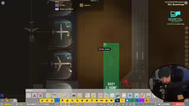02:06:40Zu Beginn des Stream-Abschnitts liegt der Fokus auf der Weiterentwicklung des Flughafenterminals. Der Streamer plant, ein neues Terminal auf der oberen Etage zu bauen, das mit dem bestehenden unterirdischen Bereich verbunden werden muss. Die dabei notwendige Straße wird provisorisch entfernt, um die Bauarbeiten zu ermöglichen. Parallel dazu wird der Zaun um das Gelände erweitert und das Fundament für das neue Terminal gelegt. Der Bau von Rolltreppen und die Definition von Sicherheitszonen sind zentrale Bausteine, um die Passagierströme zwischen den Etagen zu optimieren und den Betrieb zu verbessern.