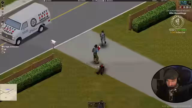 In Project Zomboid startet beamtwitch nach einer Infektion neu. Die Charaktererstellung und Modifikationen sind abgeschlossen, nun gilt es, sich in Rosewood eine Basis aufzubauen und die Umgebung zu erkunden. Ein Fahrzeug wird dringend benötigt, um die Treibstoffsuche zu erleichtern und dem sicheren Tod zu entgehen. Der Kampf ums Überleben geht weiter.