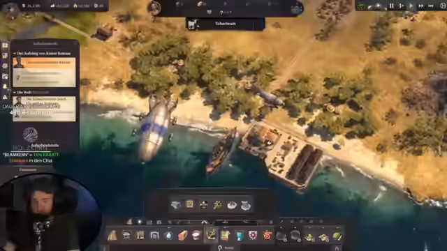 02:56:04Der Streamer nutzt Luftschiffe, um Handelsbeziehungen mit anderen Regionen zu intensivieren. Er liefert Indigo und andere Güter an die Alte Welt und erhält im Gegenzug neue Technologien und Ressourcen. Er errichtet Kontore und Handelsposten, um den Handel zu optimieren und die Wirtschaft der Stadt weiter zu stärken.