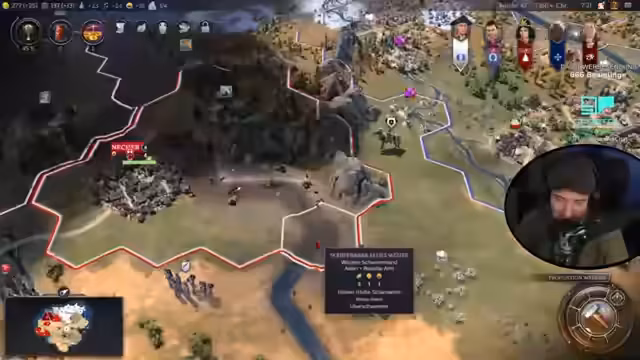 02:00:06Die Situation eskaliert abrupt, als Rom dem Streamer den Krieg erklärt. Die römische Armee greift Tiwanaku an, und eine Niederlage droht. Der Streamer bemerkt einen kritischen Fehler: Der Heeresanführer hat alle Landeinheiten auf ein Flussfeld gesandt, was sie angreifbar macht und die Formation zerstört. Obwohl die Stadtmauer und eine Verteidigungsstellung gebaut werden, ist die Position kritisch. Die Armee ist dezimiert, und die Gefahr einer vollständigen Niederlage (GG - Good Game) ist sehr hoch.
