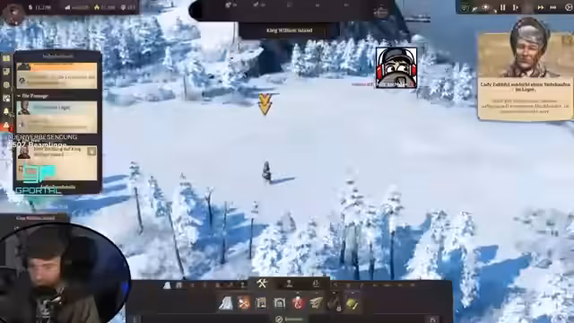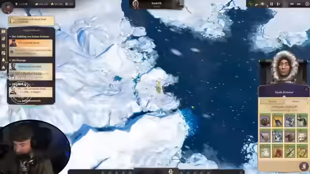 00:46:48Nachdem die Priorität auf dem Palastbau lag, wendet sich der Streamer der Arktis-Expedition zu. Nachdem die Expeditionsschiffe endlich ankommen und das Lager von Sir John gefunden haben, wird die Arktis erschlossen. Der Aufbau der Siedlung gestaltet sich durch Kälte und die Notwendigkeit, Heizöfen zu betreiben, als besonders anspruchsvoll.