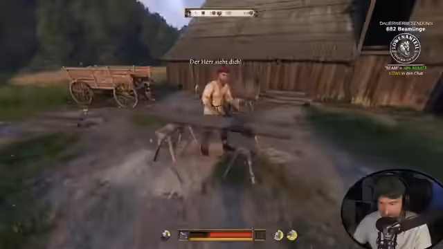 00:09:29Nach den anfänglichen technischen Schwierigkeiten beginnt der Stream mit dem Tutorial von Kingdom Come Deliverance 2. Der Streamer steuert die Hauptfigur Heinrich und wird in die mittelalterliche Welt eingeführt. Er erlebt eine Kutsche auf dem Weg zur Burg Troski und interagiert mit seinem Begleiter, Herrn Hans. Ein entscheidendes Ereignis ist ein plötzlicher Überfall durch Banditen, der den Tutorials-Teil abrupt beendet und die Ernsthaftigkeit der Situation unterstreicht.