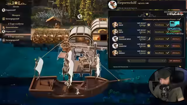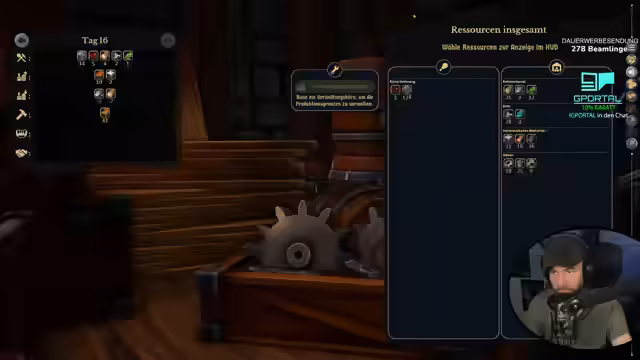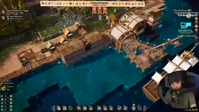 01:16:39Ein Piratenforderung geht ein und der Streamer beschließt, diese zu verweigern, um keine wertvollen Ressourcen abzugeben. Als Belohnung dafür wird eine große Auswahl an Ressourcen angeboten, darunter Planken, Umhänge und Maschinenteile. Gleichzeitig wird der Fokus auf die Erweiterung der Produktion gelegt. Ein Ingenieursgilde wird gegründet und ein Sägewerk zur Herstellung von Planken in Betrieb genommen. Die Bergarbeiter fördern Eisen, um Brennstoff für weiterführende Technologien zu produzieren. Die Bevölkerung ist jedoch noch von Nahrungsmangel und Obdachlosigkeit betroffen.