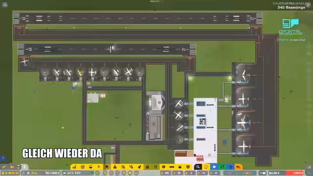 01:16:20Die letzte große Phase des Streamings widmet sich der Vervollständigung der Infrastruktur. Es werden die restlichen Parkplätze mit Boarding-Gates und Shuttlebus-Haltestellen verbunden. Sicherheitszonen werden neu definiert und Fußwege angelegt, um einen reibungslosen Passagierfluss zu gewährleisten. Das Hauptziel ist es, den Flughafen so effizient wie möglich zu gestalten, um die gestiegenen Passierzahlen bewältigen zu können und die Rentabilität weiter zu steigern.
