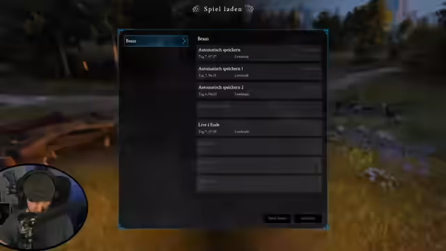 00:08:03Die Charaktererstellung beginnt, wobei der Streamer Wert auf einen sympathischen Bart legt und seine Figur anpassen lässt. Nachdem der Streamer fälschlicherweise den Spielstand löscht, startet er ein neues Spiel. Die Spieloptionen wie Überfälle, Ausrüstungsverschleiß und Lerngeschwindigkeit werden auf mittlere Stufen eingestellt, wobei die Lerngeschwindigkeit für Fertigkeiten auf 200% erhöht wird. Der Streamer benennt seinen Charakter 'Beam' und beendet die Einrichtung, um das Spiel zu starten.