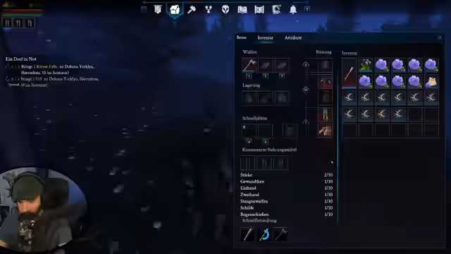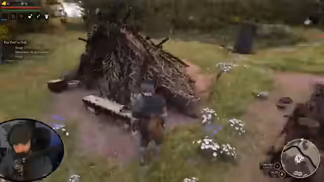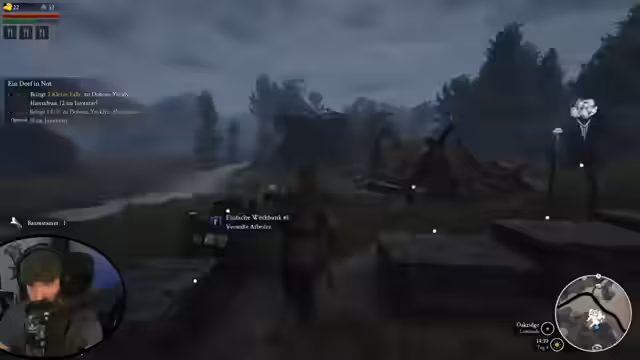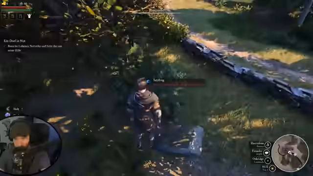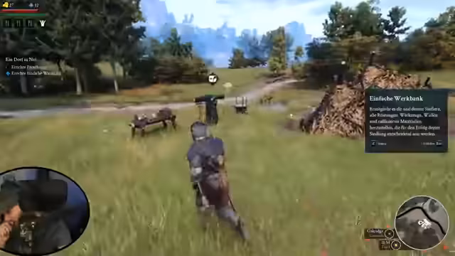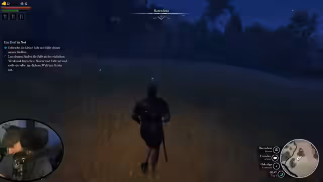02:45:07Nachdem die grundlegende Versorgung der Siedlung gesichert ist, wendet sich der Spieler dem Aufwachsen der Gemeinschaft zu. Um neue Bewohner zu rekrutieren, muss der Ruf des Dorfes bei der lokalen Bevölkerung erhöht werden. Dies geschieht erfolgreich durch das Erledigen von Quests und das Jagen von Tieren, was zu einem Anstieg des Ansehens führt. Der Spieler identifiziert potenzielle Rekruten wie den 'Bauern Paul' und den 'Bettler', welche unterschiedliche Voraussetzungen an den Ruf des Dorfes stellen und unterschiedliche Eigenschaften mitbringen, was zukünftige strategische Entscheidungen beeinflussen wird.