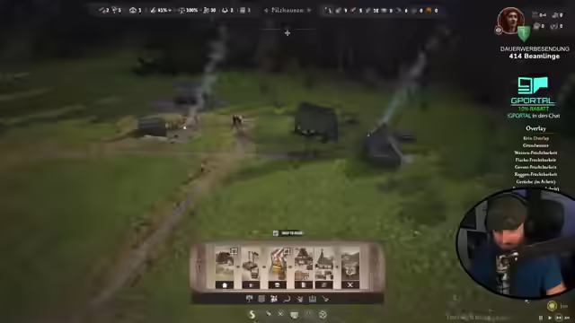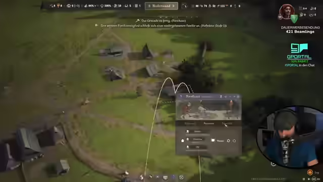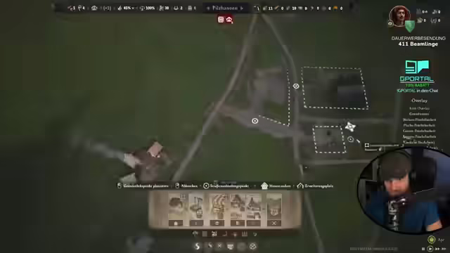 00:56:02Pilzhausen erreicht den Status eines kleinen Dorfes, wodurch neue Features freigeschaltet werden. Der Streamer erhält eine Waffenlieferung und kann nun eine Miliz erstellen, um die Siedlung zu schützen. Das Interface wird als hübsch, aber noch nicht vollständig übersetzt beschrieben. Der Streamer wählt eine Jägerverbesserung, in der Hoffnung, Wildtiere besser zu nutzen. Es wird festgestellt, dass sich das Spiel durch das Update stark verändert hat, und der Streamer muss sich erst an die neuen Gegebenheiten anpassen. Es wird eine Brennholzhütte gebaut, um die Brennstoffversorgung sicherzustellen, und der Marktplatz wird geplant, um den Handel anzukurbeln. Der Streamer stellt fest, dass der Marktplatz nun mit den Lagerhäusern verknüpft ist, was eine Neuerung darstellt.