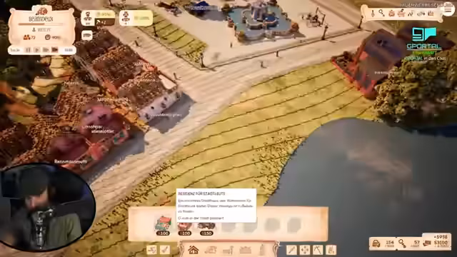 00:58:40Nachdem das Stadtproblem vorerst gelöst ist, wird der Fokus auf die allgemeine Zufriedenheit der Einwohner gelegt. Durch die Erforschung neuer Technologien wie Baumaterialien, Dekorationen und neue Gewerbeoptionen, wie ein Weingut, kann die Attraktivität der Stadt gesteigert werden. Der Bau einer ersten Residenz für Landwirte und die Gestaltung eines zentralen Marktplatzes mit Brunnen und Spielplatz prägen nun das Bild der aufkeimenden idyllischen Stadt.