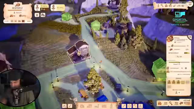 00:21:44Aufgrund der Platzierungsprobleme wird der Start der Stadt auf einer neuen Karte gewählt, die mehr ebene Fläche bietet. Der Fokus liegt nun auf dem Aufbau eines Stadtkerns mit Marktplatz und ersten Wohngebäuden. Um die Zufriedenheit der ersten Einwohner zu gewährleisten, werden sofort ein Markt mit Lebensmitteln, Straßenlaternen und eine Lagerhalle errichtet, was jedoch schnell logistische Herausforderungen bezüglich der Transportwege offenbart.