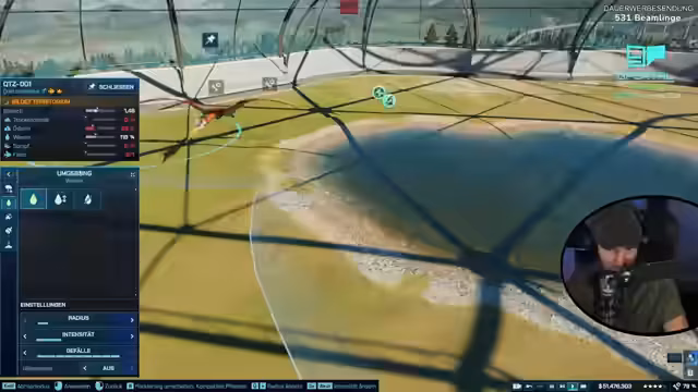 01:46:16Der Streamer konzentriert sich darauf, sein Gehege durch Terraforming und den Aufbau einer festen Lieferzone zu verbessern. Eine zentrale Idee ist der Bau einer großen Kuppel für Flugsaurier wie den Quetzalcoatlus, die durch Höhe beeindruckt. Parallel dazu wird der Bau von Zänen priorisiert, um die Sicherheit zu erhöhen. Der Fokus liegt dabei darauf, Zäne aufzustocken und gleichzeitig die Umwelt durch das Hinzufügen von Felsen, Weideland und Wasserattraktionen ansprechender zu gestalten, um den Dinos und den Gästen mehr Komfort zu bieten.