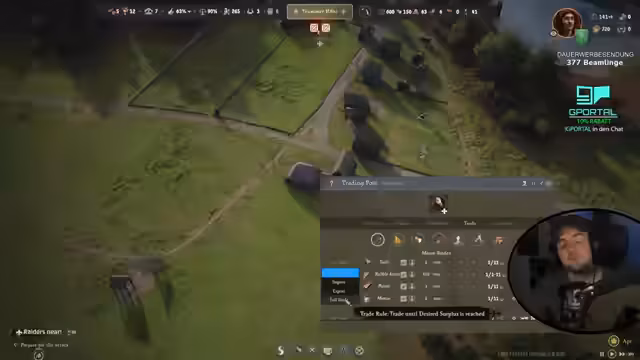01:29:44Der Streamer konzentriert sich auf die Erhöhung des Vermögens und die Stärkung der Armee. Er plant, 28 Bogenschützen auszubilden, um die bestehende Speer-Miliz zu ergänzen. Um die Unzufriedenheit der Bevölkerung zu senken, wird der Bau einer Kirche der Stufe 2 angestrebt, wofür jedoch zahlreiche Ressourcen wie Ziegel und geschliffene Steine benötigt werden. Im Handelsmanagement wird die Importgrenze für bestimmte Güter auf 20 Einheiten festgelegt, um die Eigenproduktion zu fördern und Überschüsse ab 20 Einheiten zu exportieren. Die Produktion von Bögen wird forciert, da diese einen hohen Verkaufswert haben. Parallel dazu wird die Expansion der Siedlung durch den Bau neuer Häuser vorangetrieben, insbesondere in der Nähe des Marktplatzes, um die Bevölkerungsdichte zu erhöhen und die Wirtschaft anzukurbeln. Die Beschaffung weiterer Ochsen für den Transport und Pferde für den Handelsposten ist ebenfalls geplant, um die Effizienz zu steigern.