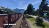 02:12:08Nachdem die groben Trassen verlegt sind, wird der Ausbau auf durchgehende Doppelgleise vorangetrieben. Parallel dazu wird mit dem Bau der Oberleitung begonnen. Die erste Passagierlinie wird eingerichtet und eine Diesellok vom Typ BRV für den Einsatz auf der langen Strecke von Stremmen nach Bern ausgewählt. Nach anfänglichen Problemen mit der Fahrzeugzuweisung wird die erste Zugfahrt erfolgreich gestartet.
