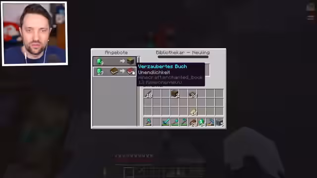 04:49:54Die Hauptaufgabe bleibt die Sammlung der entscheidenden Verzauberungen für Ausrüstung. Das Ziel ist es, eine vollständige und starke Ausrüstung zu haben, mit einem Fokus auf Schärfe, Schutz, Haltbarkeit und Mending. Der Prozess des Tradens und Einloggens der Verzauberungen wird detailliert gezeigt. Während der Suche nach Schärfe 5 kommt es zu einem kritischen Fehler, der den Verlust des bereits eingetragenen Schäfe-Vorparts zur Folge hat und den Streamer sichtlich frustriert.
