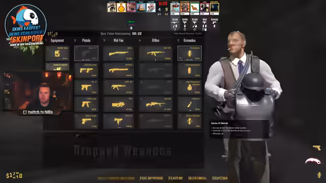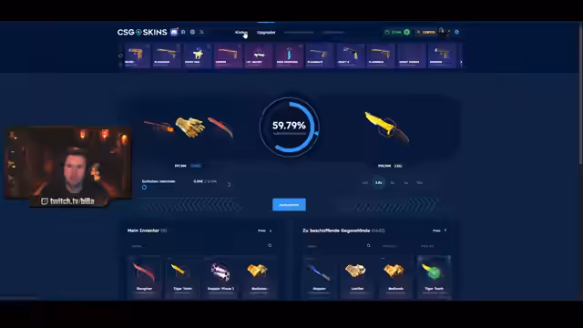 01:36:56Im weiteren Verlauf des Streams interagiert der Streamer intensiv mit der Community. Er erkennt einen Zuschauer an, der ihm 2016 folgte, und äußert Nostalgie. Er spendiert dem langjährigen Follower ein Grafikpaket und spricht über seine lange Laufzeit im Streaming, die bis 2014 zurückreicht. Im Gegenzug bittet er die Zuschauer, ihm bei der Suche nach bestimmten Waffen-Skins zu helfen und nutzt die Suchfunktionen der Seite, um die Wünsche der Community zu erfüllen und das Interesse aufrechtzuerhalten.