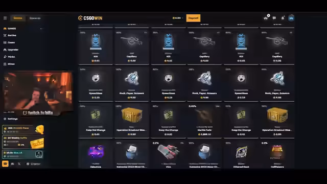 02:02:16Nach dem FACEIT-Spiel wechselt der Streamer zu Hobby-Caseopenings auf einer Online-Plattform. Die Ergebnisse sind zunächst enttäuschend, mit niedrigen Auszahlungen und unglücklichen Ziehungen. Der Streamer experimentiert mit verschiedenen Betragsstrategien und Battle-Typen wie Six-Way-Crazy und Group Battles, um eine höhere Auszahlung zu erzielen, bleibt aber erfolglos.