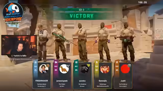 02:48:08Während eines aktiven Matchs auf Ancient zeigt sich der Streamer zunehmend genervt und überfordert. Er fühlt sich von Gegnern mit hohem Ping und vermutlichem Cheater-Verhalten imitiert. Mehrfach beschreibt er unrealistische Headshots und frustriert seine schlechte Performance in der Partie, was zu einem Verlust führt und seinen Tilt weiter verstärkt.