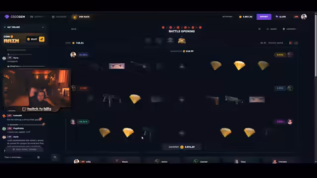 03:07:14Der Fokus verlagert sich auf die Gamba-Aktivitäten auf Case-Battle-Seiten. Bei einem Battle mit einem Pot von 3300 Dollar nach einer Case sieht der Streamer sein Ziel, die Einsatzquoten für seine Bots auf unter 0,1% zu drücken, jedoch als illusorisch an. Er moniert die hohen Quoten von 11% und bezeichnet das Setup als „Scam“ und „unfassbar“, da er durch die Prozente am Ende leer ausgeht, selbst wenn seine Bots treffen.
