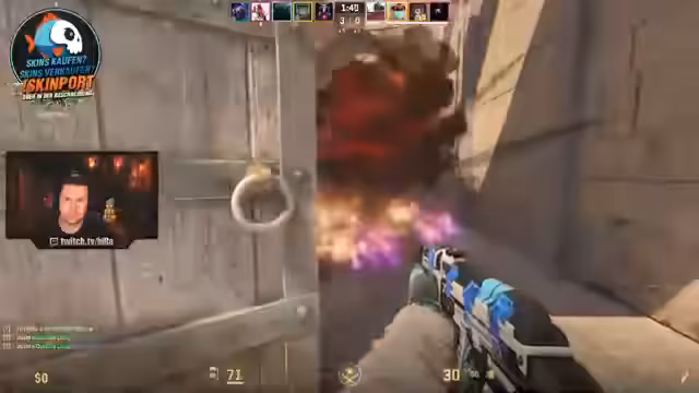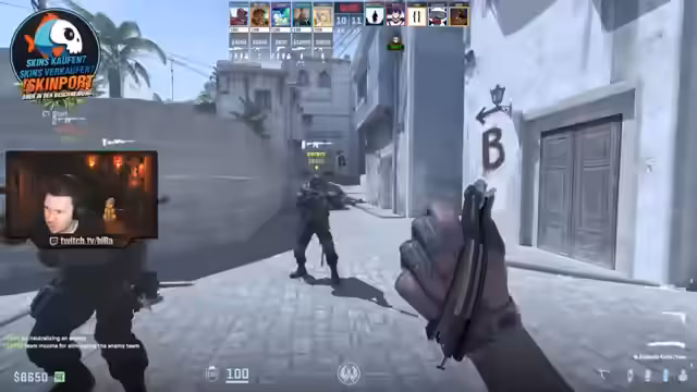 02:50:25Während des Streams kommt es zu wiederholten Cheating-Verdächtigungen seitens des Streamers gegenüber einem Gegner, der unerwartet gute Leistungen zeigt. Der Streamer äußert den Verdacht, dass der Gegner möglicherweise wallt oder cheatest, weil dieser auf einmal Informationen hat, die er normalerweise nicht haben dürfte. Parallel dazu werden intensive taktische Anweisungen für das eigene Team gegeben, um Runden zu holen und das Bombenziel zu verteidigen.