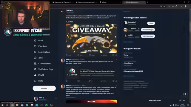 03:03:26Der Streamer geht auf die Organisation des CS2-Turniers ein und erwähnt, dass Skinport als Hauptpartner und Sponsor fungiert. Es wird eine Kooperation mit Skinport beworben, wobei Affiliate-Links und ein Giveaway im Wert von 1200 Dollar beworben werden. Die Seite Skinport wird für ihre benutzerfreundliche Oberfläche und Filtermöglichkeiten gelobt, insbesondere für Casuale Spieler, die sich im Markt für CS2-Skins nicht auskennen.