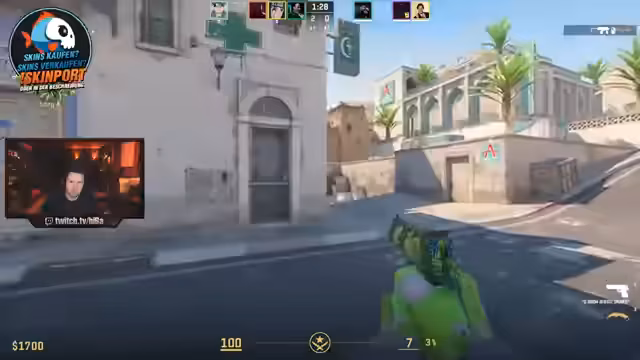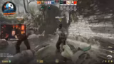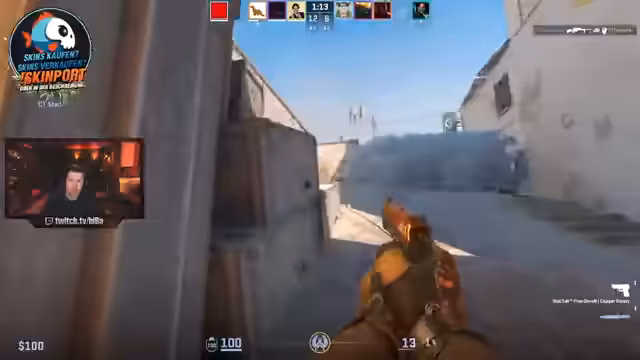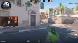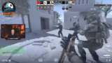 00:01:00Das Gameplay ist geprägt von intensiven Taktiken wie Rauchen (Smoke) und Blenden (Flashes), um Angriffe vorzubereiten oder zu stören. Der Streamer versucht ständig, mit seinen Teammitgliedern die Aktionen auf der Map zu synchronisieren. Die Kommunikation ist jedoch oft holprig, was zu Missverständnissen und schlechten Positionierungen führt. Er kommentiert die gegnerischen Spieler, deren Winkel und Bewegungen, und äußert sich frustriert über die eigene Performance.