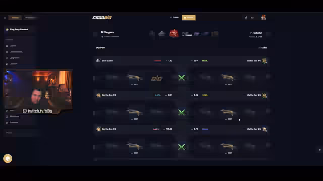 02:09:18Nach mehreren verlorenen Runden wechselt der Fokus vollständig von dem CS:GO-Spiel zu einem Glücksspiel-Battle. Der Streamer öffnet Cases und nimmt an einem Jackpot teil. Er vermisst das Einspielen im Jackpot, versucht aber sein Glück im Battle-Modus, um die Verluste auszugleichen.