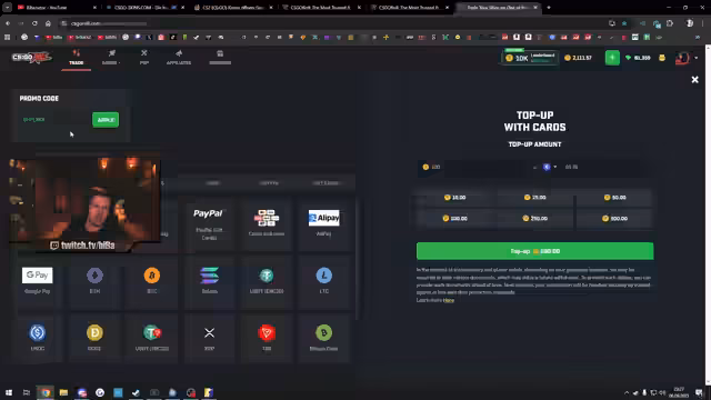 Es wird über ein neues Profilbild, Glücksspiel und Partnerschaften mit CSGO-Skins.com & Keydrop gesprochen. Änderungen am Roll Affiliate-System, Code-Aktionen und Discord-Integration werden erläutert. Gamble-Sessions, Skin-Investitionen und Erfolge im Spiel werden thematisiert. Zudem gibt es Infos zu Auszahlungsoptionen und Leaderboard-Aktionen.