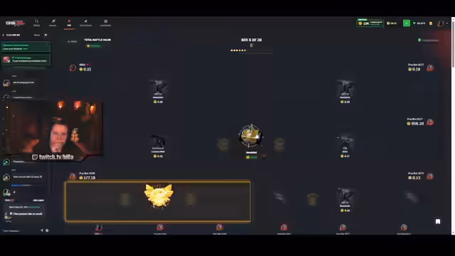 02:21:32Der Streamer setzt seine Glücksspiel-Aktivitäten auf Skin Rave fort, mit dem Ziel, seine Verluste wieder wettzumachen. Er nutzt verschiedene Battle-Formate wie Six-Way, Crazy und Jackpot, oft mit extrem hohen Einsätzen von mehreren tausend Dollar. Seine Sprache ist geprägt von emotionalem Hoch und Tief, er wechselt zwischen Ausrufen wie 'Run it back!' und Enttäuschung über ausbleibende Gewinne. Der Abschnitt zeigt das instabile und riskante Muster seines Spielverhaltens deutlich.