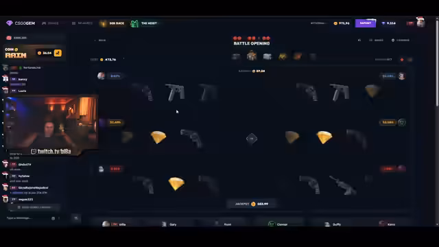 00:08:32Es folgen mehrere Verluste in Case-Battles, insbesondere auf Roll und JEM. Der Streamer kritisiert die Seiten scharf: Roll wird für Bugs und technische Probleme gescholten, während JEM als unfair mit extrem niedrigen Gewinnchancen beschrieben wird. Verluste bei Bullseye und Peach werden erwähnt. Die Unwahrscheinlichkeit von Wins wird statistisch analysiert, und die Seiten werden als 'kaputt' bezeichnet.