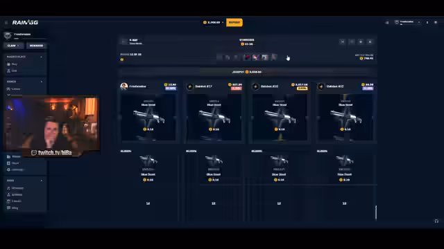 02:38:58Nach der Beendigung der Faceit-Session wechselt der Streamer zur Jackpot-Plattform Roll, um Skin-Wetten zu spielen. Er verbrannt mehrere Schleifen, ohne nennenswerte Gewinne zu erzielen, und äußert seine Enttäuschung über die Seite. Er versucht, trotz der Verluste und des Drucks auf den Jackpot-Pot weiterzuspielen, wobei er sein Glück in wiederholten 2v2v2-Battles sucht und auf einen großen Profit hofft.