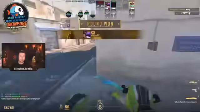 00:04:30Der Streamer zeigt sich zunehmend frustriert über das Spielgeschehen, insbesondere über die Figur des Viktor. Er klagt über unfaire Treffer und pre-fired Shots, die er für unmöglich hält. Seine Frustration steigt, da er das Gefühl hat, gegen einen gekauften Account zu spielen. Er äußert den stark Verdacht, dass der Gegner Cheats verwendet, was sich an dessen übermenschlichen Plays wie perfekte Aim-Peaks und ungewöhnliche Reaktionszeiten festmacht.