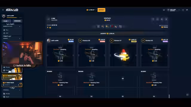 01:55:04Nach dem Ende der FACEIT-Partie wechselt der Fokus vollständig zur Skin-Gambling-Plattform 'Roll'. Der Streamer ist sichtlich emotional involviert und diskutiert ausführlich über Theorien, die angeblich die Gewinnwahrscheinlichkeiten auf der Seite manipulieren sollen. Er behauptet, dass Positionen wie 'unten rechts' eine extrem hohe Gewinnquote hätten, was seine Wetten und Erwartungen stark beeinflusst. Die Kommentare sind von starker Euphorie bei kleinen Gewinnen und tiefr Enttäuschung bei Verlusten geprägt, oft begleitet von Vorwürfen gegenüber dem Anbieter.