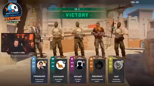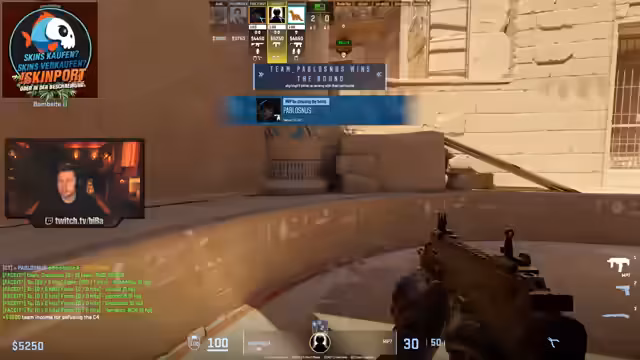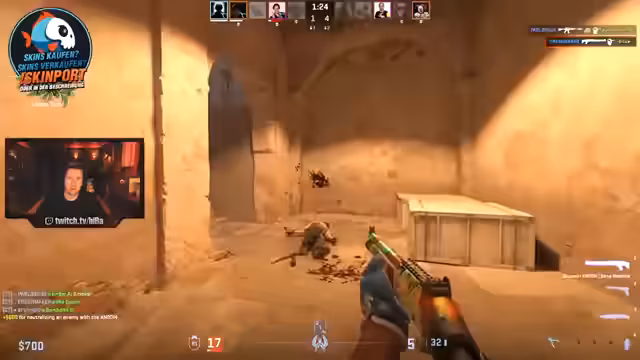 01:05:19In einem knappen Spiel führt der Streamer ein Mid-Round-Kall aus und lässt Sandro die Bombe bei ihm ablegen. Nachdem die Runde verloren geht, wirft er den Gegnern vor, unfaire Tricks und Ghosting zu betreiben. Er äußert den Verdacht, dass die Gegner seine Positionen kennen, obwohl es keine Fetzeln gibt. Ein Mitspieler Sandro wird kritisiert, da er angeblich nicht mitfokussiert und wichtige Aktionen verpasst.