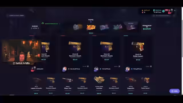 03:45:53Der Streameröffnet verschiedene Cases auf der Seite Roll, darunter Hobby- und Community-Cases. Er kommentiert die gezogenen Items und deren Werte teils frustriert, teils erfreut. Besonders ärgerlich für ihn sind 1%-Case, da sie statistisch die geringsten Chancen auf wertvolle Items bieten. Er strebt besonders nach höheren Prozent-Chancen wie 5% oder mehr, um profitablere Ergebnisse zu erzielen und spricht von einem 'Juice', also der Aussicht auf Gewinne.