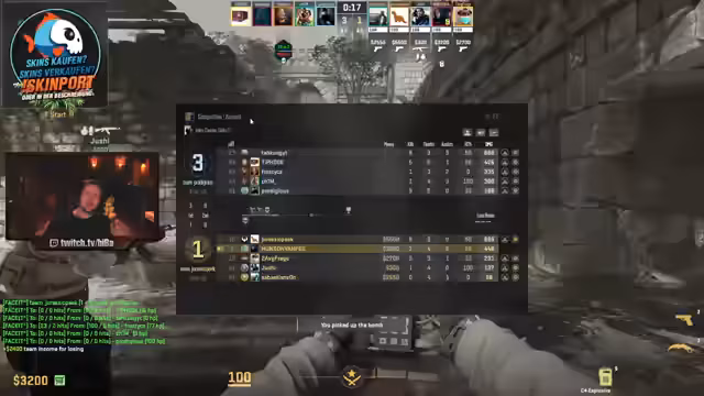 00:00:00Der Stream startet mit Gameplay auf FACEIT. Der Streamer und sein Team diskutieren Spielzüge, insbesondere auf der Map Mitte. Es kommt zu einem Lag des Streamers, der seine Performance beeinträchtigt und ihn frustriert. Der Chat wird in taktische Entscheidungen mit einbezogen, um Positionen zu halten und den Gegner zu kontern. Der Fokus liegt auf der Kontrolle des Mittelfelds und dem Verteidigen von Punkten wie B. Die Kommunikation ist schnell und auf das Gameplay fokussiert, wobei mehrere Runden gespielt und analysiert werden.