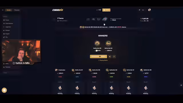 02:57:01Der Streamer wendet sich dem Thema Gambling zu und beschreibt seine Taktik. Er bevorzigt Jackpot-Modi, bei denen er mit hohen Prozenten (45%+) spielt, in der Hoffnung, einen großen Pot zu snipen. Er beschreibt seine aktuelle Session auf Roll als äußerst frustrierend, da er trotz guter Prozente fast ausschließlich verliert und bei 2v2v2-Battles nur sehr geringe Gewinnquoten von ca. 11% im Vergleich zur erwarteten 33% verzeichnet.