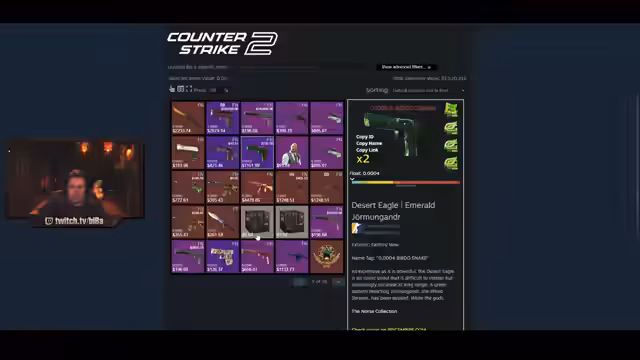 Der Streamer kündigt die Rückkehr des Teams an und berichtet von einem Hellcase-Erfolg. Diskussionen über CS:GO-Skins, Marktmanipulation und Preisentwicklung. Kritik an der Farbgebung einiger Skins und dem Glitzereffekt auf Stickern. Frustration über Verluste bei Skin-Wetten und Probleme mit HypeJob werden thematisiert. Analyse der Diskrepanz zwischen Angebot, Nachfrage und Preisentwicklung im CS:GO-Skin-Markt.
