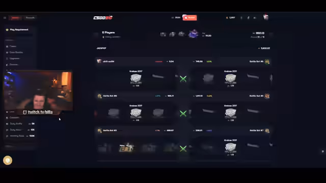 03:17:10Der Streamer wechselt zum Öffnen von CS2-Skins über ein Battle-System. Er erwähnt ein zuvor gespieltes Battle, bei dem ein Titan Holo-Skin für 80.000 Einheiten gehittet wurde, was aber nicht gewann. Stattdessen profitierten zwei andere Teilnehmer von großen Gewinnen. Anschließend wird ein Battle in der 'Inception Case' geöffnet, bei dem ein extrem seltener Double-Hit (0.16 und 0.25 in Folge) diskutiert wird. Dieser wird als fast unmöglich beschrieben und löst starke Emotionen aus. Der Streamer kritisiert die Seite als rigged und äußert sich frustriert über wiederholte Verluste trotz hoher Investitionen.