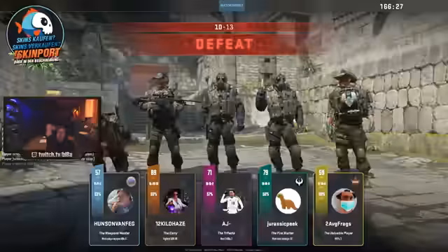 02:59:39Der Streamer diskutiert mit dem Team detaillierte Taktiken für Counter-Strike-Runden, insbesondere für den Bombenleger-Modus. Es geht um Positionierungen (z. B. Donut, Red Room), Flash- und Smoke-Nutzung, sowie Entscheidungen zwischen A- oder B-Rushes. Das Team plant einen A-Fake mit drei VB (Vorsichts-Bomben), während der Streamer mittig aufklären möchte, um Stacking-Gefahren zu vermeiden. Wiederholt wird die Bedeutung von Kommunikation betont, etwa bei der Positionierung von Mitspielern und der genauen Lage der Bombe. Trotz einiger erfolgreicher Runden äußert sich der Streamer frustriert über ELO-Verluste in vorangegangenen Spielen.