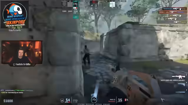 00:07:03Es kommt zu einem entscheidenden Rundenverlauf. Die Teammitzer attackieren A mit mehreren Molotovs und Donuts, um die Gegend zu kontrollieren. Ein Mitspieler erhält den entscheidenden Headshot und sichert den Sieg für das Team. Während des Spiels stößt ein Spieler namens 'Sandro' zum Team, was begrüßt wird. In einer späteren Runde muss ein Retake auf B ausgeführt werden, und der Streamer kritisiert, dass das Team zu langsam ist und die Runde verliert.