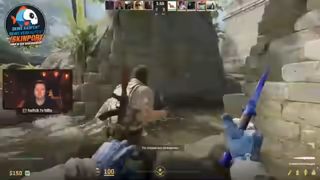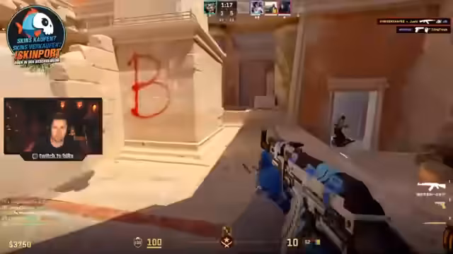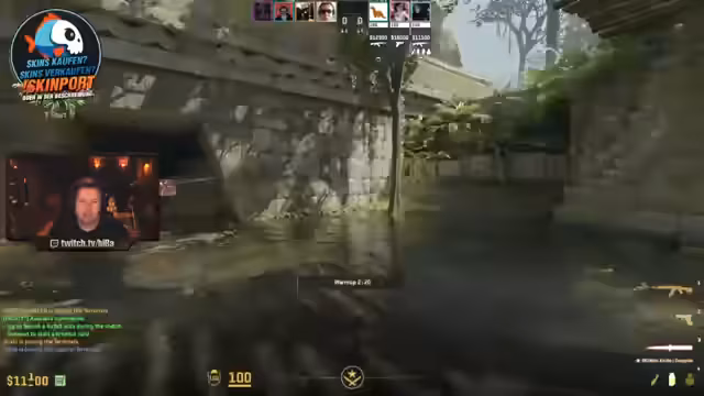 00:00:38Der Streamer beginnt sein FACEIT-Spiel und gibt taktische Anweisungen für die Anfangsrunde. Er plant, vor B zu positionieren, während sein Team den Split auf der anderen Seite der Karte durchführt. Er grüßt mehrere Nicks aus dem Chat und startet in die Runde mit der Erwartung, dass die Gegner, welche er als Russen identifiziert, sehr stark spielen werden. Die erste Runde verläuft turbulent, mit schnellen Tötungen auf der Mitte und Cave, wobei der Streamer von einem Gegner mit 99 in den Kopf getroffen wird.