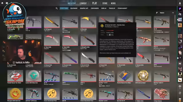 00:46:35Während des Spiels unterbricht der Streamer, um über den CS:GO-Skinmarkt zu sprechen. Er analysiert aktuelle Preisschwankungen und vermutet Marktmanipulation. Er gibt den Rat, Gewinne mitzunehmen und breit gefächerte Portfolios zu haben. Er zeigt sein eigenes Inventar und berichtet über Gewinne von teilweise über 500 %.