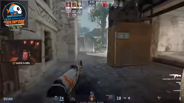 01:45:00Der Streamer beendet das Match und äußert eine humorvolle 'Allergie gegen Huren-Söhne'. In einer letzten Runde auf einer neuen Map beginnt das Spiel mit einer stabilen Performance. Der Streamer ist erleichtert, nicht mehr durch Wände angezielt zu werden, und gewinnt diese Runde mit einem hohen Score, was einen starken Kontrast zum vorherigen Match darstellt.