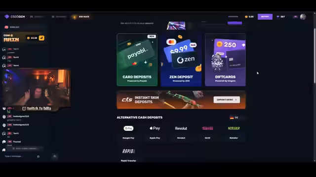 00:39:57Der Streamer teilt den Code für Cisco Jam im Discord-Kanal "Sponsor-Stuff". Der Code kann 500 Mal eingelöst werden und bietet einen Coin. Um den Code einzulösen, müssen die Nutzer zunächst den Code BIBA aktivieren, auf der Einzahlungsseite nach unten scrollen und "Code einlösen" klicken. Es wird jedoch eine Verknüpfung des Discord-Kontos gefordert, was der Streamer kritisch sieht, aber die Möglichkeit besteht, die Verknüpfung danach wieder aufzuheben. Er startet ein erstes Battle auf der neuen Seite mit 500 Coins. Er muss sich noch an die neuen Cases und Skinpreise gewöhnen, lobt aber die Animationen, während er die Sounds als zu laut und "Gamomat-ähnlich" empfindet. Das erste Battle endet mit einem Verlust von 150 Coins, was er später noch einmal testen möchte.